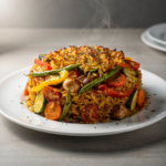 Nuestro Arroz al horno de verduras se comporta de forma excepcional en mesa; al ser un arroz seco, mantiene muy bien la textura y el grano suelto incluso tras el reposo. Para garantizar la excelencia, coordinamos con precisión la franja horaria de entrega o recogida, asegurando que el plato llegue en su mejor punto de cocción y temperatura, justo para ser disfrutado con todo su sabor.
