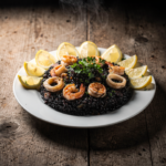 Para garantizar que el Arroz negro en paella mantenga su sabor marino intenso, recomendamos reservar con al menos 48 horas de antelación. Esto nos permite asegurar la frescura de la tinta y los moluscos, así como tu franja horaria de entrega.