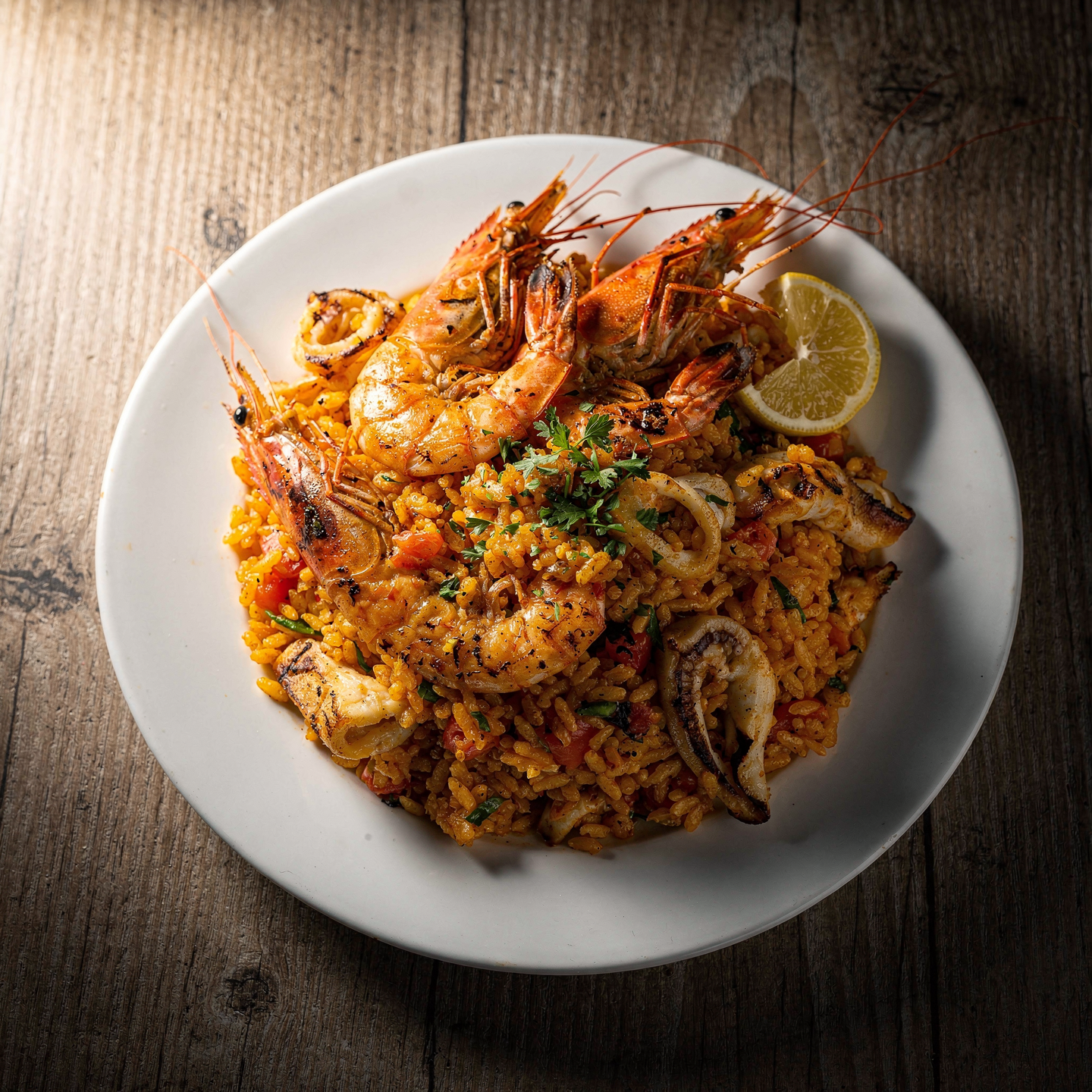 El Arroz seco de sepia y gambas es una de las joyas de nuestra carta, diseñada para los amantes del sabor marino más puro y el grano suelto. La paella valenciana es un arroz seco, mantiene muy bien la textura. Aun así, coordinamos la franja para servirla en su mejor punto. Esta metodología nos permite asegurar que el arroz absorba toda la esencia del fumet sin perder su firmeza característica.