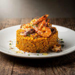 El Arroz seco de sepia y gambas se fundamenta en la receta valenciana tradicional, donde el éxito no reside en una «receta secreta», sino en la maestría del sofrito y la calidad del género. Se utiliza un fondo de roca intenso que hidrata el grano hasta que queda completamente seco y suelto. La sepia aporta textura y las gambas coronan el plato, concentrando todo el sabor del Mediterráneo en la paella.