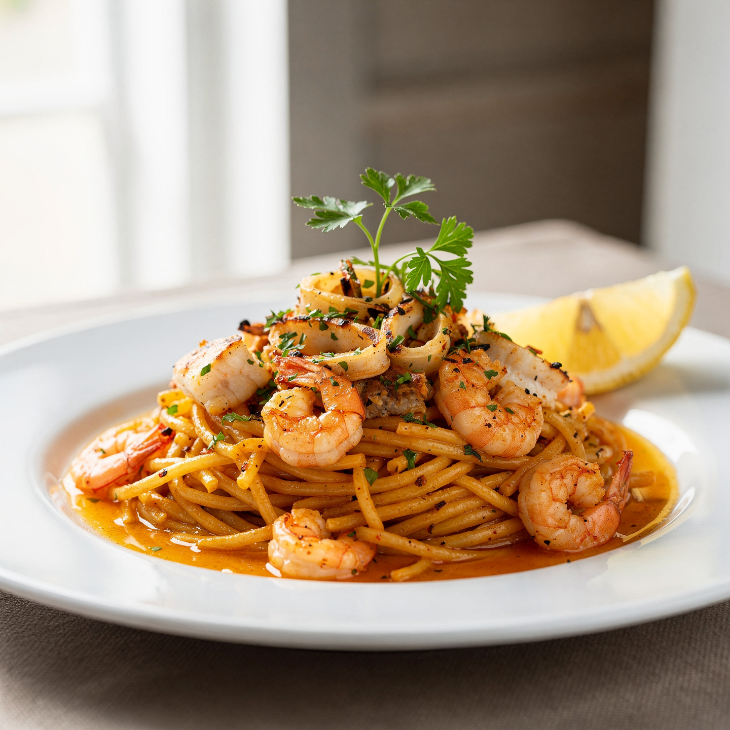 Nuestra Fideuà del señoret es un tributo a la tradición marinera de Valencia, donde la comodidad no sacrifica el sabor. Sin recurrir a «recetas secretas», el éxito se basa en un fondo de pescado de roca y morralla intensamente reducido. Utilizamos fideo fino que se tuesta en el sofrito y marisco totalmente pelado (gambas, calamar y rape), permitiendo que el comensal disfrute de la esencia del Mediterráneo sin necesidad de usar las manos, tal como dicta la costumbre del «senyoret».
