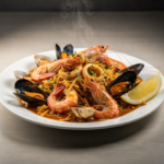Al igual que la paella tradicional, nuestra fideuà de marisco se elabora para obtener un resultado seco y sabroso, manteniendo la textura firme del fideo. Para garantizar una experiencia gastronómica óptima, coordinamos con precisión la franja horaria de entrega. De este modo, nos aseguramos de servir el plato en su mejor punto, evitando que la pasta absorba exceso de humedad y pierda su toque.