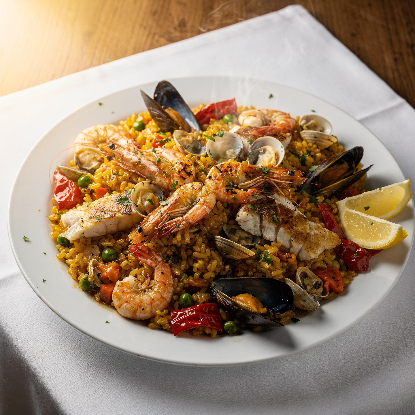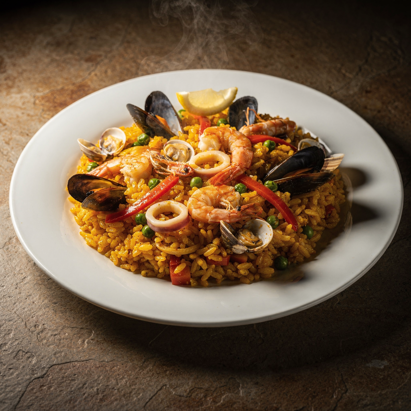 Nuestra Paella de marisco se elabora bajo la técnica tradicional para obtener un arroz seco que mantiene perfectamente la textura y el sabor del Mediterráneo. Para que disfrutes de la mejor experiencia, coordinamos con precisión la franja horaria de entrega o cocinado, asegurando que el marisco y el grano lleguen a tu mesa en su mejor punto, conservando toda su jugosidad y aroma marino.