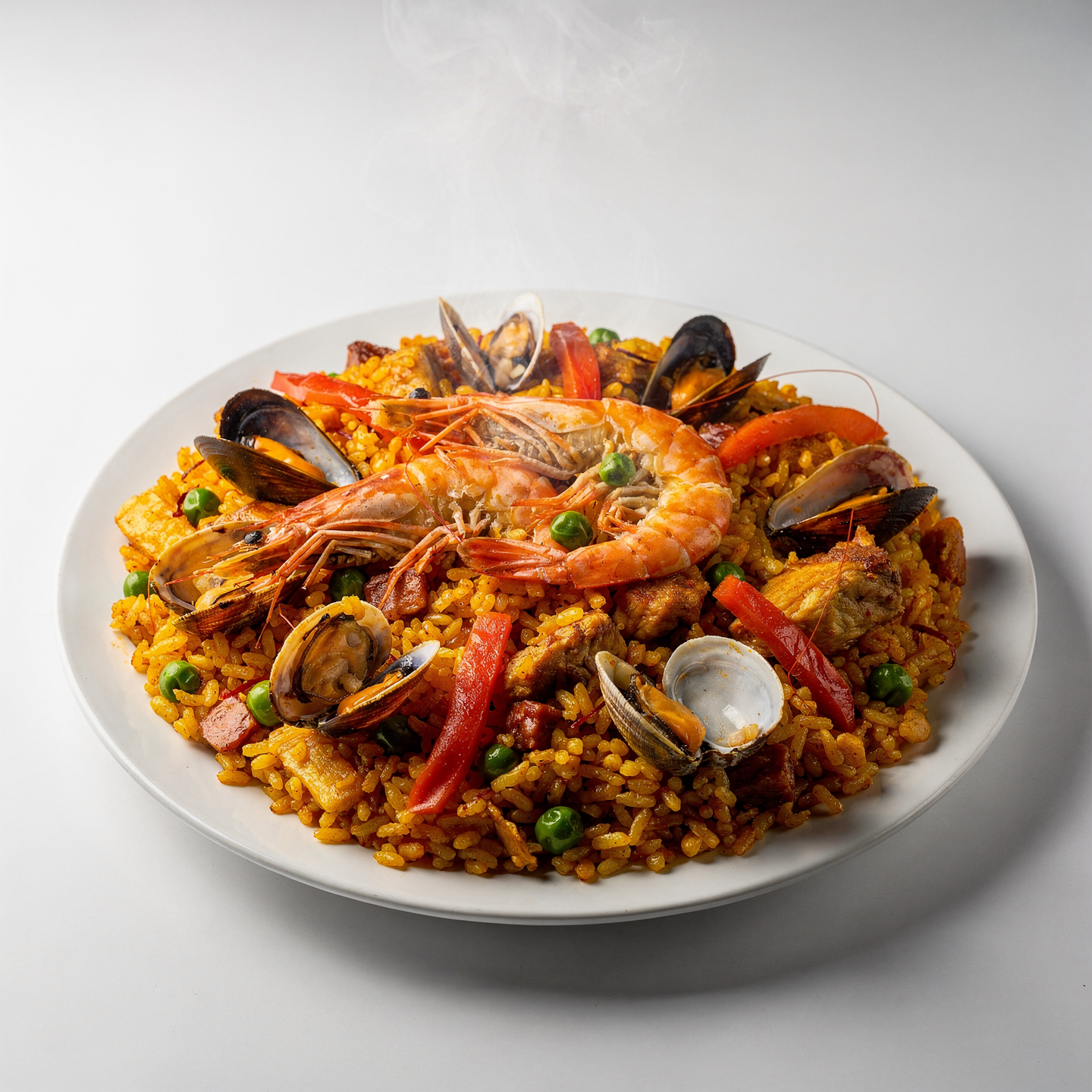 Nuestra Paella mixta clásica respeta la base de la receta valenciana tradicional, donde el sofrito de tomate, pimiento y azafrán marca el ritmo del sabor. En lugar de artificios, apostamos por la calidad del arroz bajo un caldo con cuerpo que absorbe la esencia del pollo, el magro y los frutos del mar. Es un plato equilibrado que rinde homenaje a la cultura del fuego y el buen producto local.